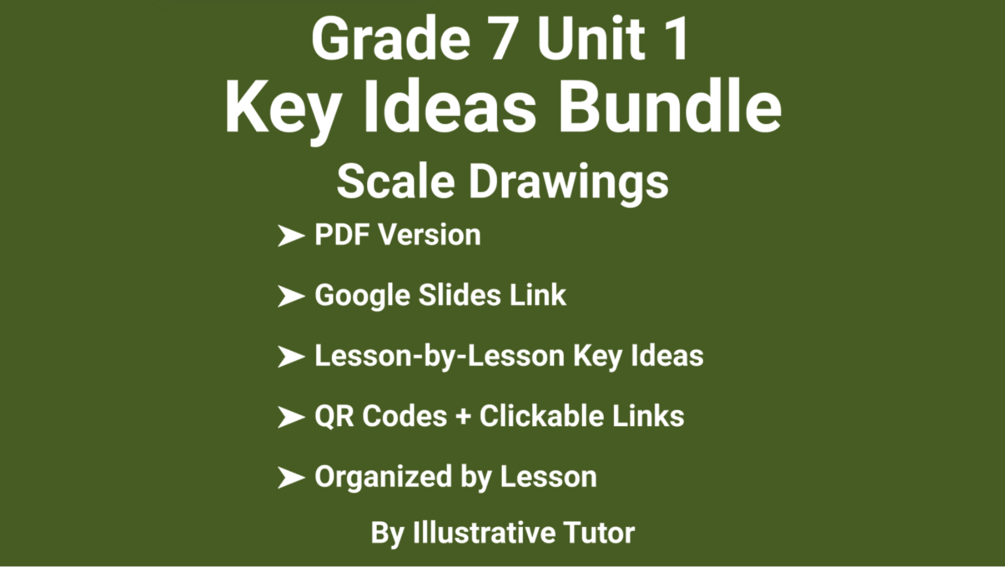 Grade 7 Unit 1 – Key Ideas Bundle "Scale Drawings" (PDF + Google Slides + Video Links) Help your students understand every lesson in Unit 1 of Illustrative Mathematics Grade 7 with this easy-to-use teaching companion. This bundle includes: • Printable PDF and Google Slides • Clear, student-friendly Key Ideas for all 13 lessons • Organized by lesson for fast reference • QR codes + clickable links to matching video tutorials • Created by Illustrative Tutor with classroom and independent learners in mind Perfect for teachers, tutors, and homeschoolers who want clear explanations and easy access to resources. 🎓 Teach smarter. Review with confidence. Download now.